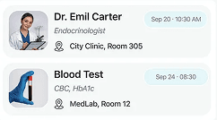 Every appointment automatically updates the patient's daily routine, giving caregivers a structured view of what the day should look like.